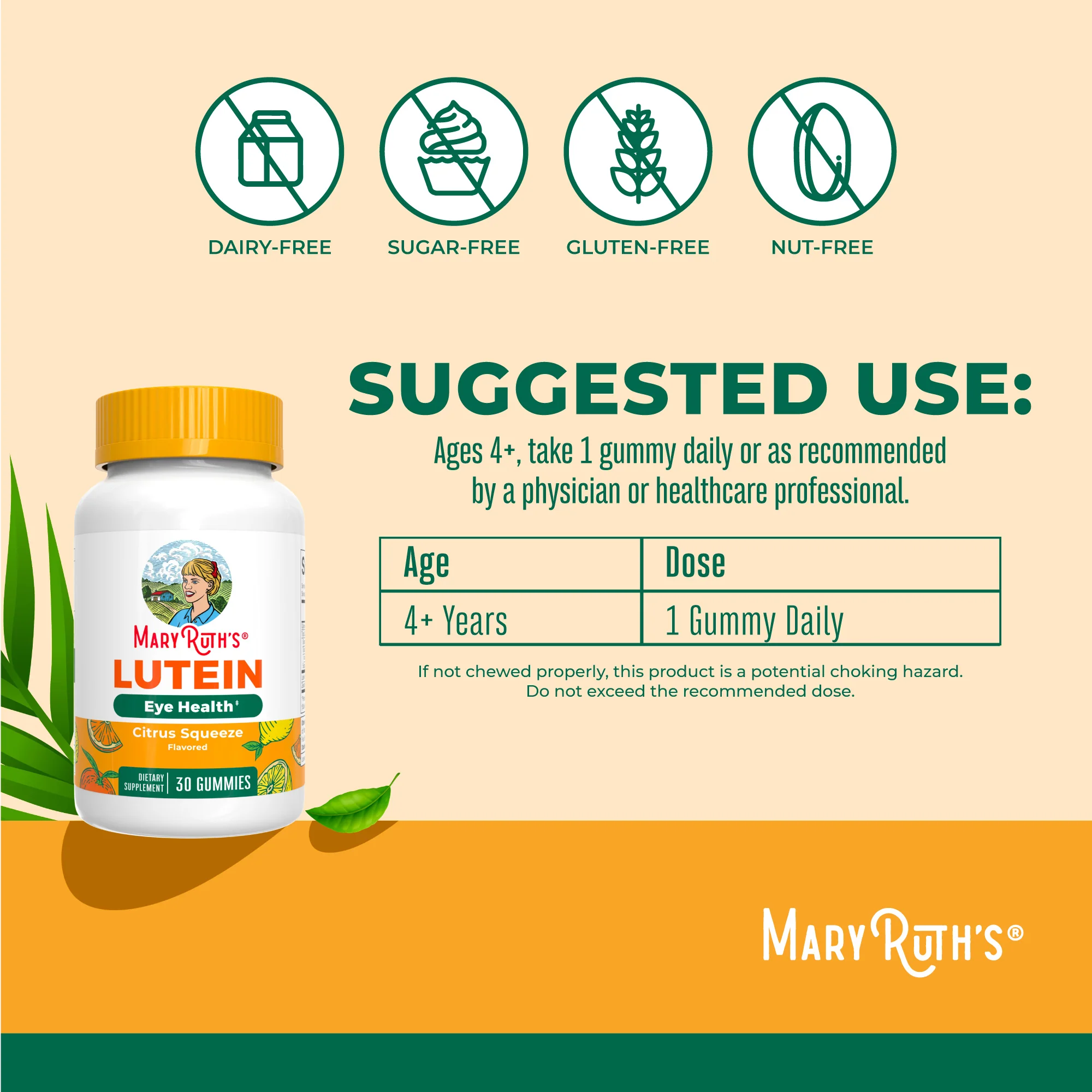 Support your eye health, vision, and more with just one delicious citrus-flavored gummy per day! MaryRuth’s pectin-based Lutein Gummies deliver lutein and zeaxanthin, which are dietary carotenoids derived from Aztec Marigold Flower Extract. Both lutein and zeaxanthin help filter harmful blue light, which may help support visual function.