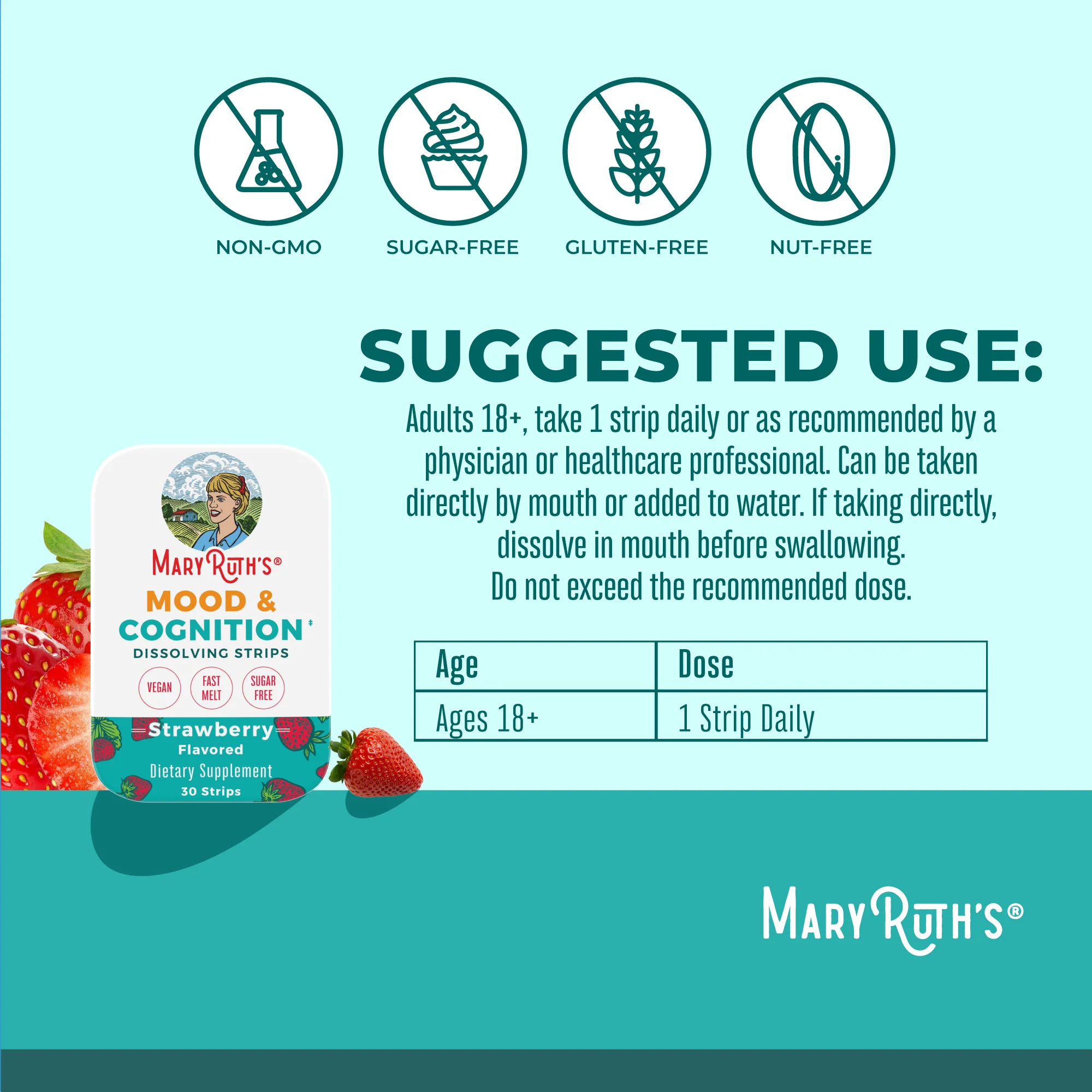 Support Mood & Cognition With Easy & Delicious Strawberry-Flavored Strips. Simply peel a strip, place it on your tongue, and let it dissolve!