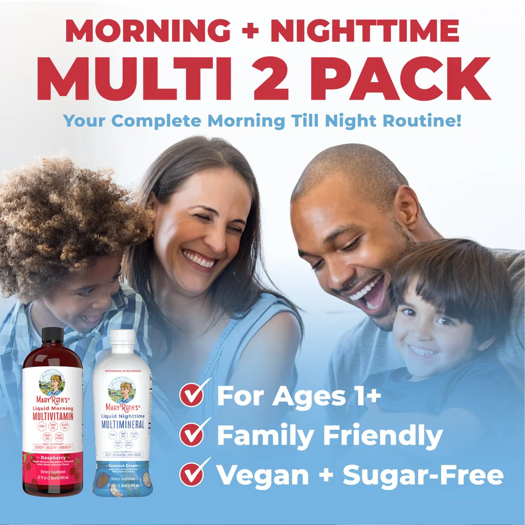Conquer your day with one of our fan-favorite bundles! Let the collaborative power of our Morning Multivitamin and Nighttime Multimineral and support your body throughout the day & into the night. Start your morning with our delicious Raspberry Liquid Morning Multivitamin to receive essential vitamins, minerals, antioxidants, and amino acids for your body’s daytime needs. Our Coconut Liquid Nighttime Multimineral contains vitamins, minerals, and antioxidants your body needs for normal sleep regulation, decreasing stress and increasing relaxation.Â